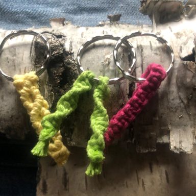 Wir lernen die Grundknoten kennen und können am Ende schon eine erste fertige Arbeit mit nach Hause nehmen.